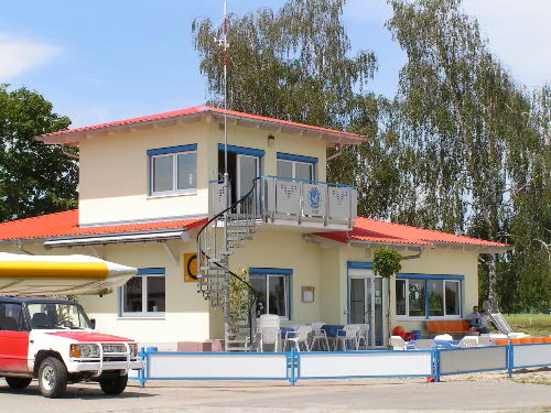 der Terrasse aus kann man den Flugbetrieb gut beobachten. Segelflieger, Motorflieger und vor allem Modellflieger. Zu Fuß vom Platz nach Kehl sind es ca. 40 Minuten.” August 2004 |